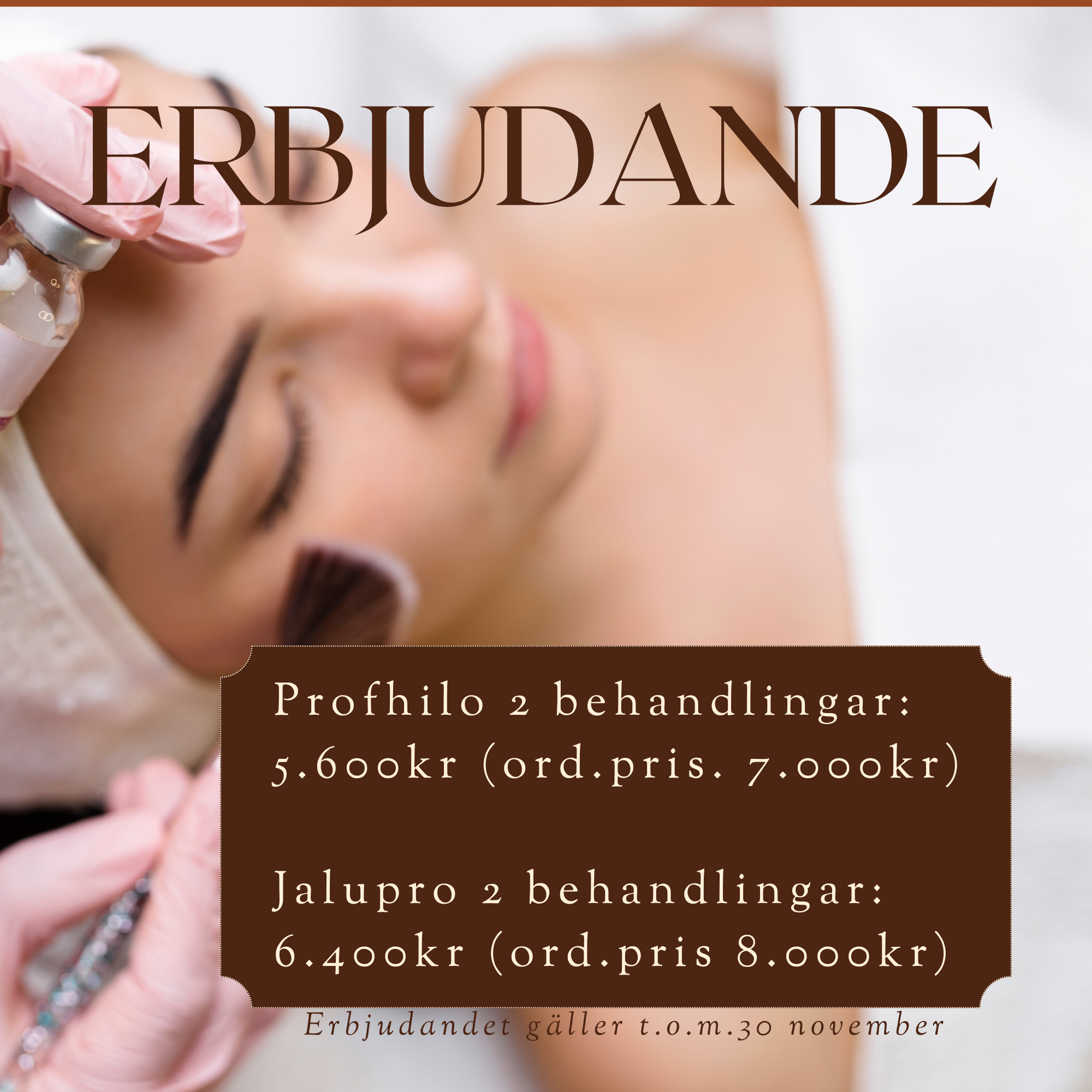 I höst får du 20% rabatt när du bokar två behandlingar av Profhilo eller Jalupro Super Hydro.